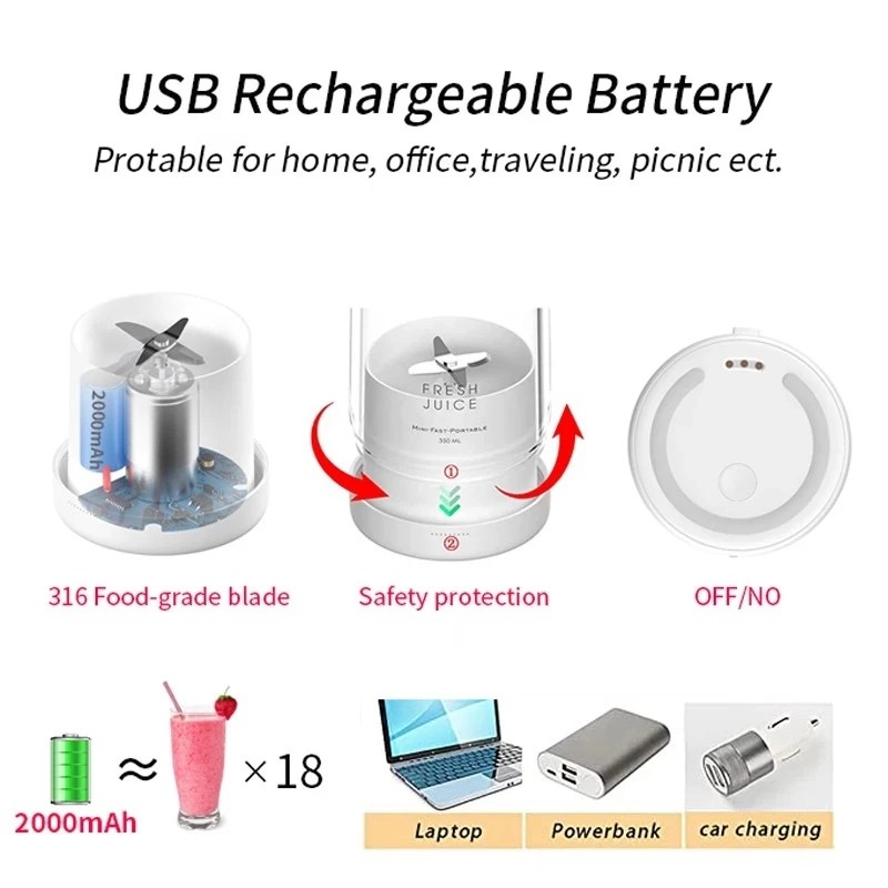 – The Actver Portable Blender 420mL Juicer Bottle is a compact, USB rechargeable blender designed for making fresh juices, smoothies, and protein shakes on the go.